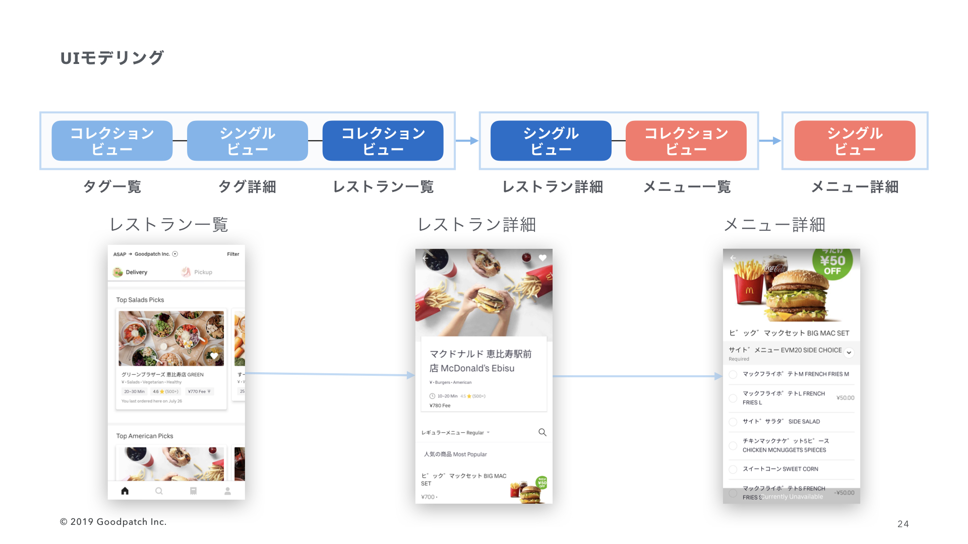 OOUIはユーザーが自分の仕事を達成するため、使用する「もの」、オブジェクトにフォーカスします。例えば、お腹が空きました。UberEatsで食べ物を注文したいです。食べ物を注文する前にレストランを選びます。