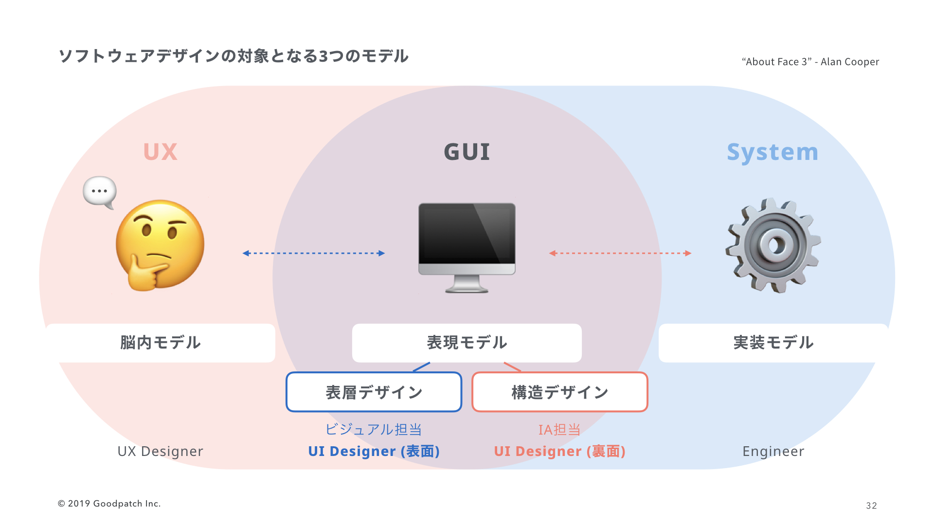 UIデザイナーの最も重要な目標の1つは、表現モデルをユーザーの脳内モデルに可能な限り一致させること、そして、エンジニアとうまく連携することです。ですから、UIデザイナーは、ユーザーがソフトウェアで行う作業についてどのように考えるかを詳しく理解することが重要ですし、エンジニアリングも理解する必要があります。